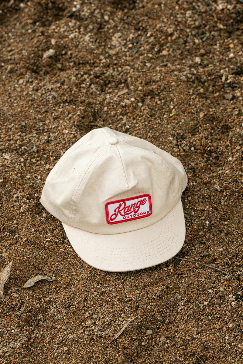 The all-rounder. This unstructured 5-panel cap in soft beige cotton features a low profile, shortened brim and adjustable velcro back for a snug, easy fit. Subtle, versatile, and finished with our Range Outdoors woven patch. It's made for everyday wear, everywhere you roam.